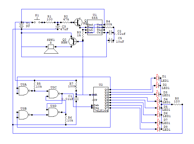 Roulette Board created using a 555 Timer IC and a series of capacitors and transistors.