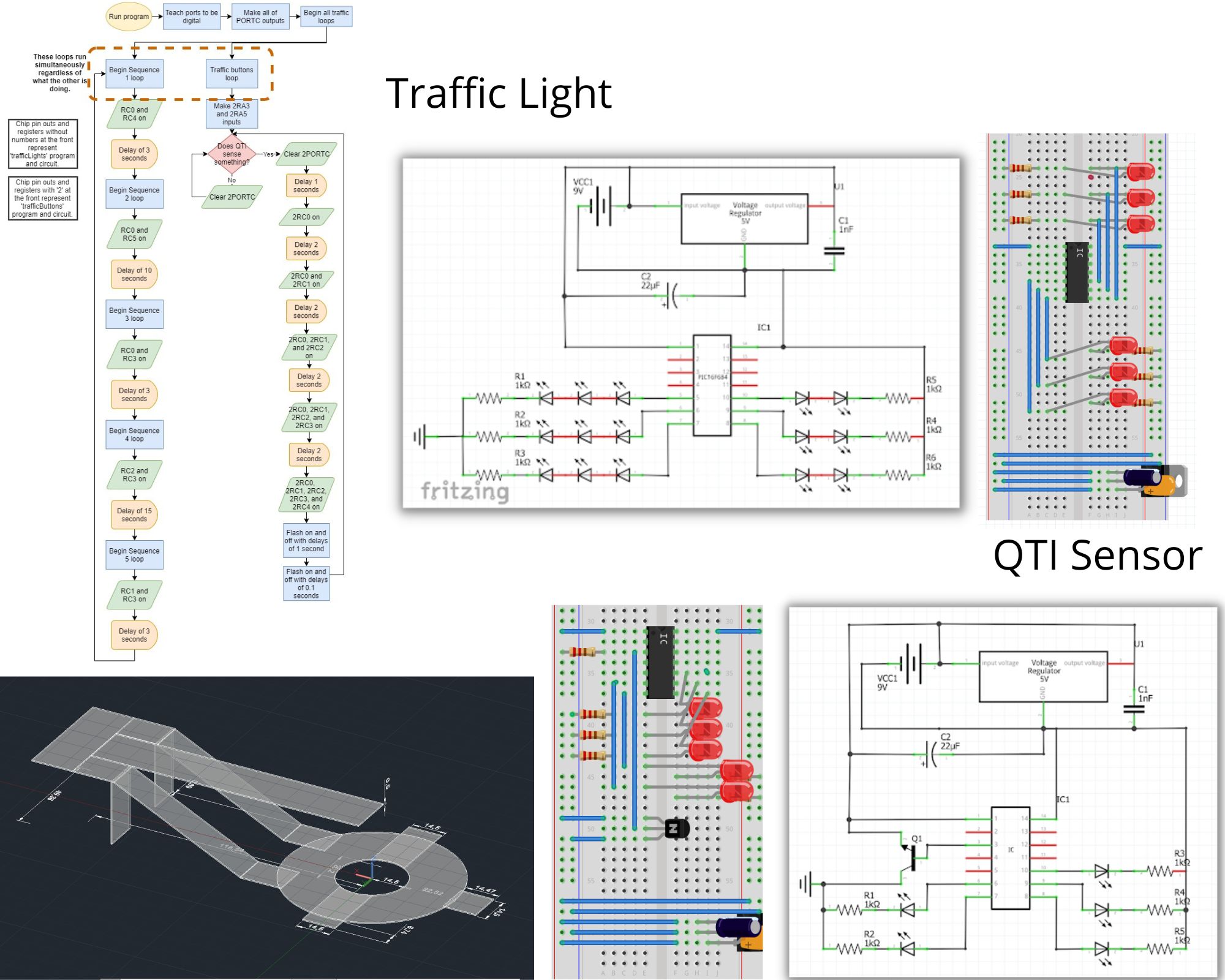 Uses PIC16F684 and coded with MATLAB sim for traffic lights that connect to arduino bridge.