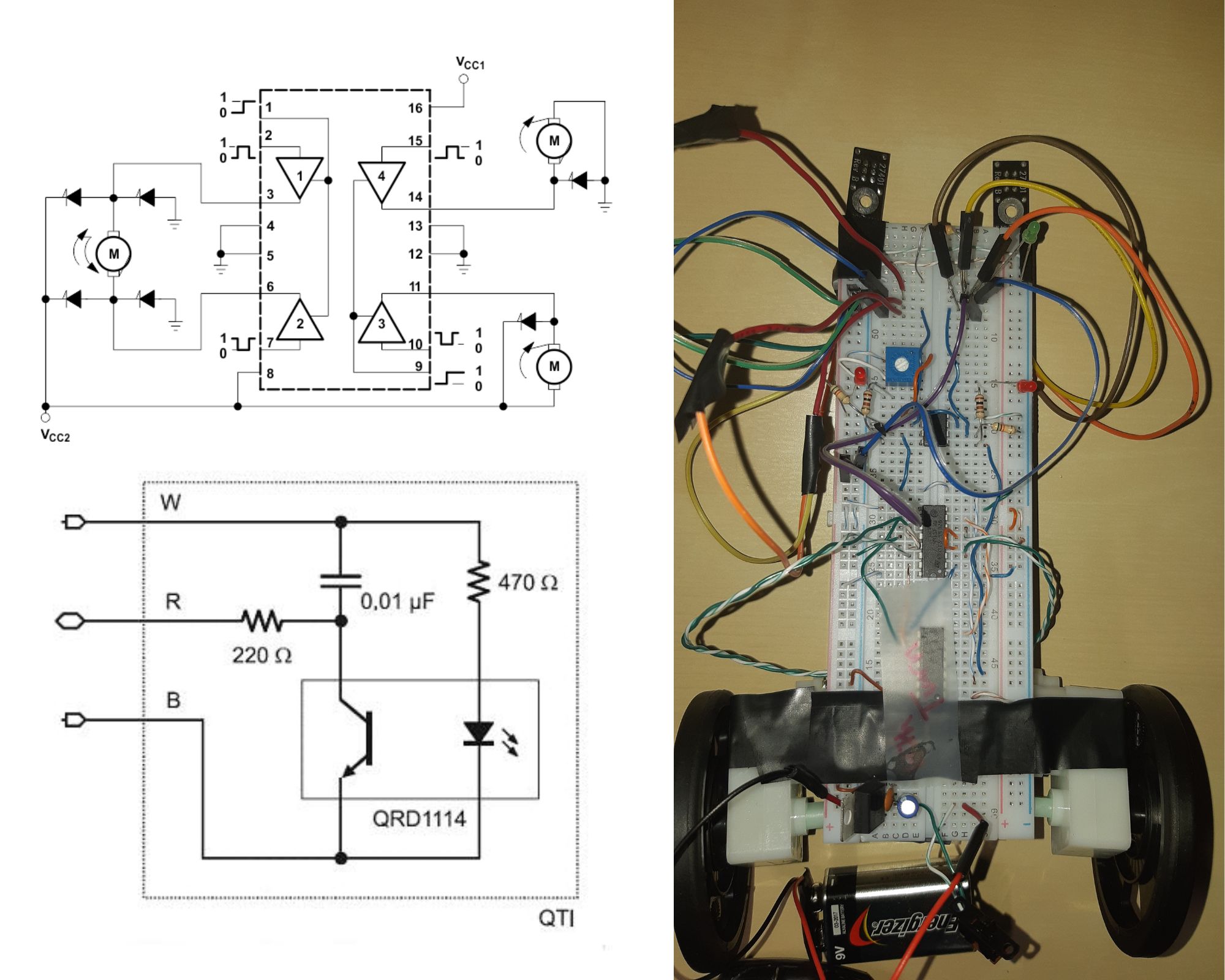 Uses a PIC16F684 to execute the line follower code written in assembly to maneuver through a path using a blackline on a white surface.